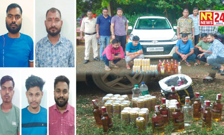 अवैध शराब पर कबीरधाम पुलिस की बड़ी कार्रवाई, कार से भारी मात्रा में शराब जप्त, 5 आरोपी गिरफ्तार।
