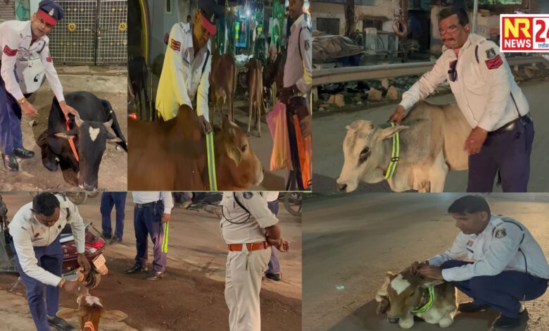 गौ माता को रेडियम बेल्ट पहनाने की पहल – सड़क सुरक्षा में कबीरधाम पुलिस का मानवीय प्रयास